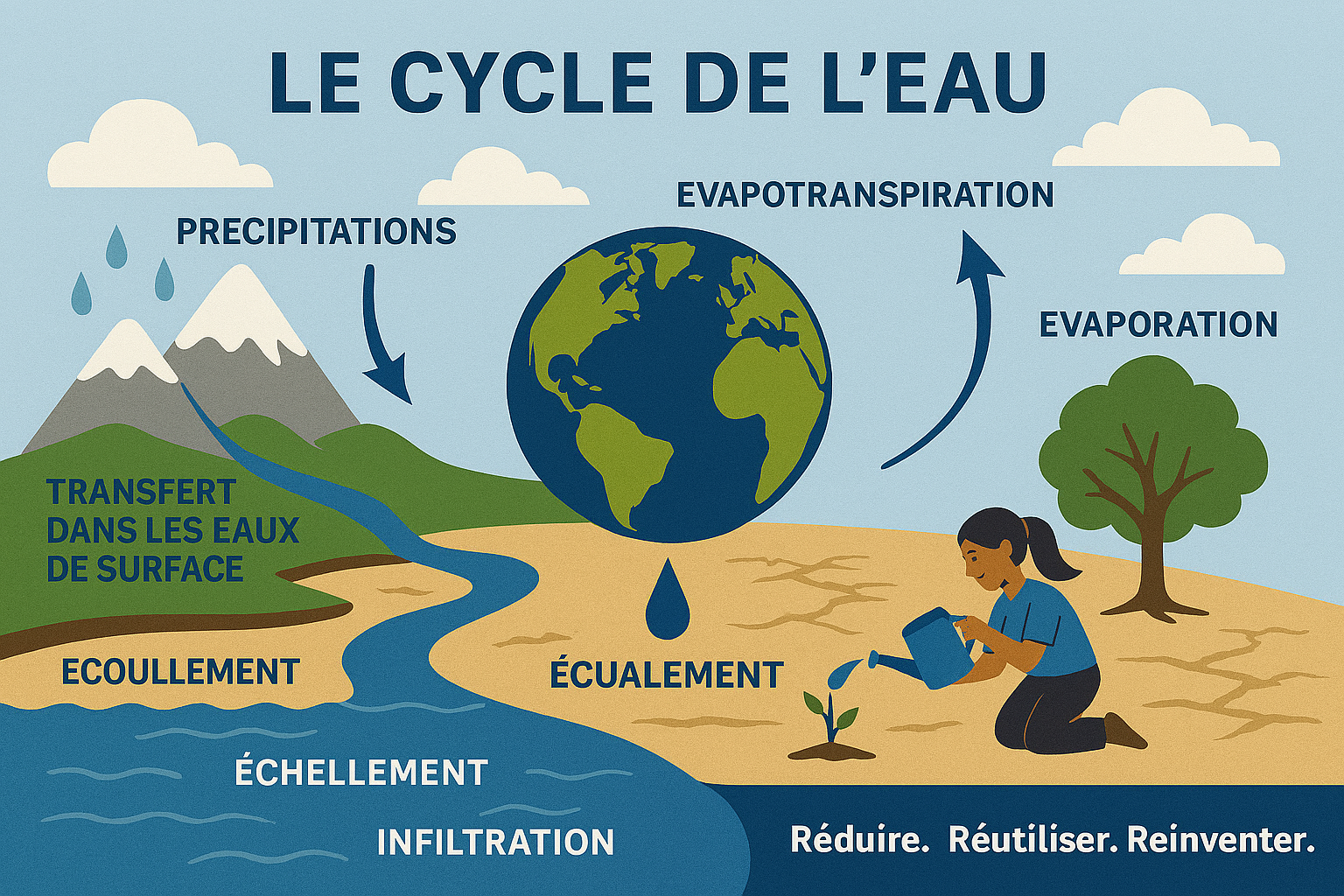 Le cycle de l’eau est naturellement régulé, mais il est sensible aux activités humaines. La déforestation, l’artificialisation des sols, la surexploitation des nappes ou encore le changement climatique modifient ce fragile équilibre : sécheresses plus fréquentes, inondations violentes, et raréfaction de l’eau douce.